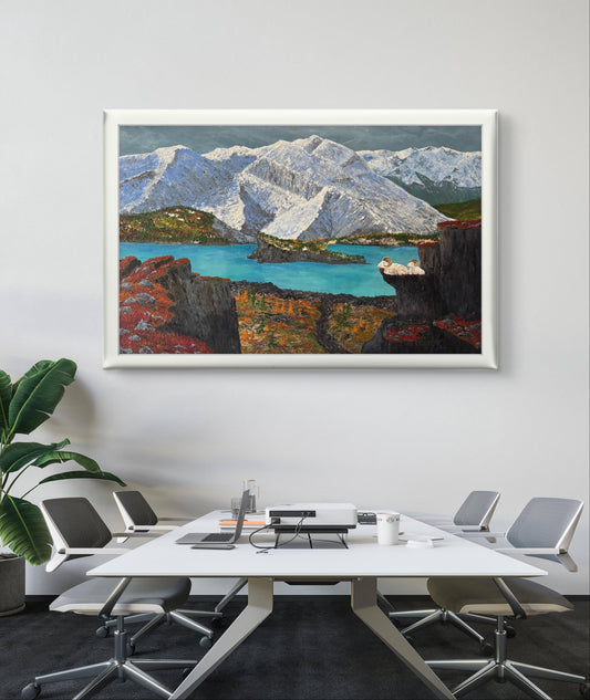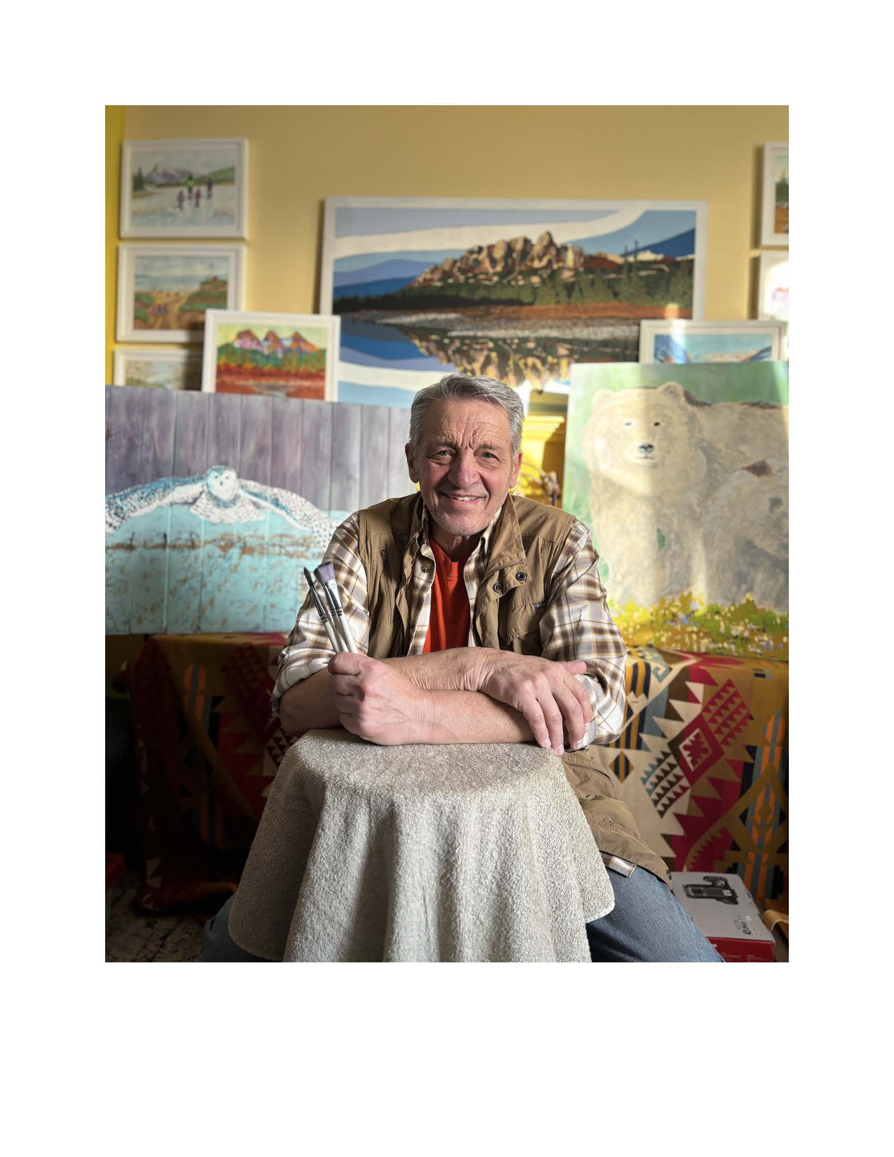 These paintings reflect my love of colour and primitive styling. I enjoy wandering about our Province taking in the beauty that abounds. From open prairie through to the badlands of the southeast into the foothills and glorious mountains on our western border, there is no shortage of awe inspiring landscapes to take in.